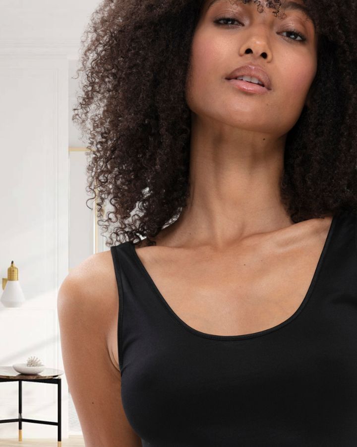 Camisole réversible, larges bretelles, col en V et encolure ronde, coupe ajustée, tissu fluide.
