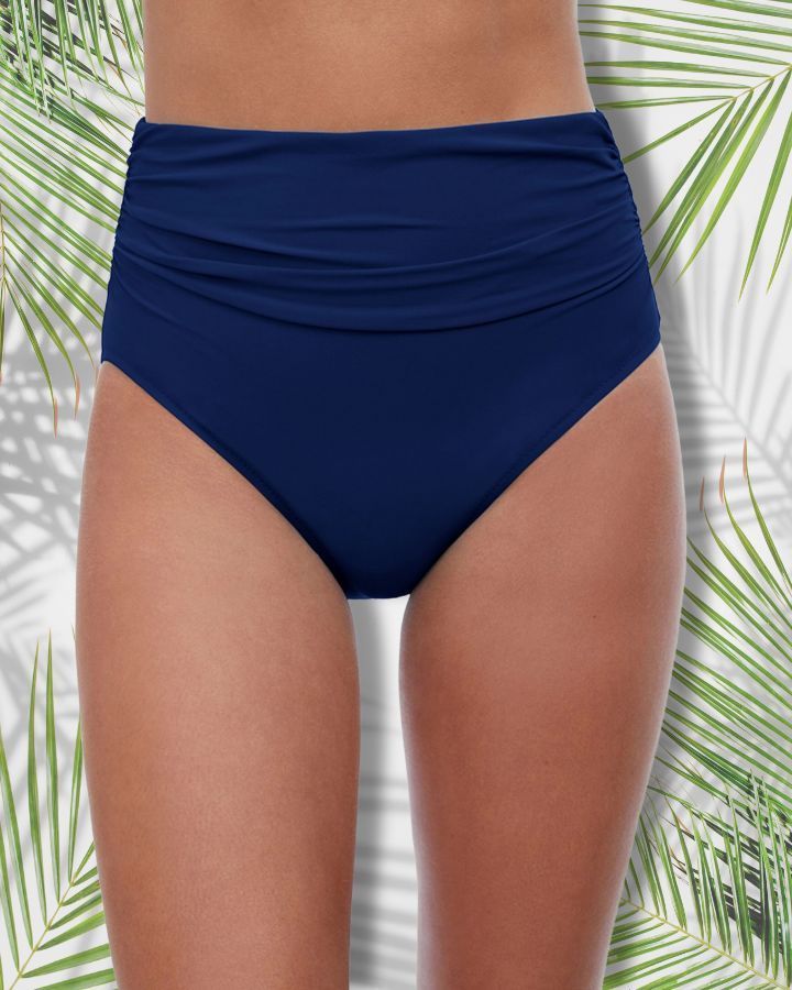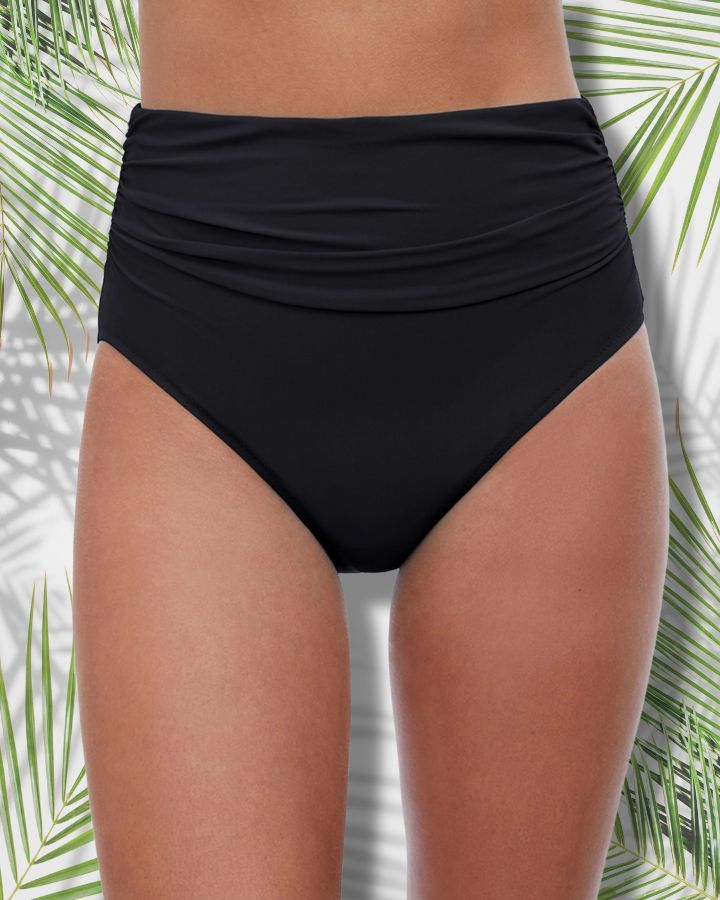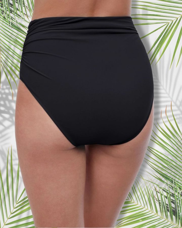 Culotte de maillot de bain gainante taille haute, très couvrante, échancrure régulière.