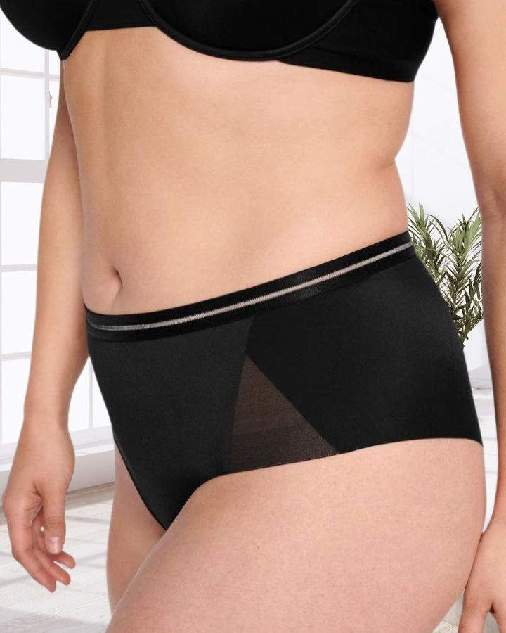 Culotte régulière Naturana, coutures plates aux jambes, détail en maille transparente, bandes élastiques à la taille pour un confort accru.