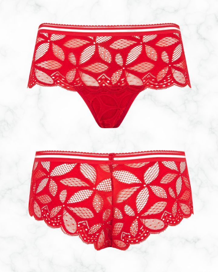 Culotte garçonnière, taille basse, dentelle, taille élastique.