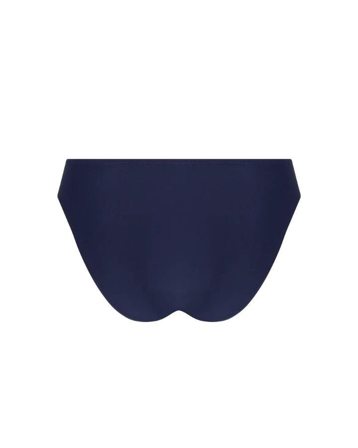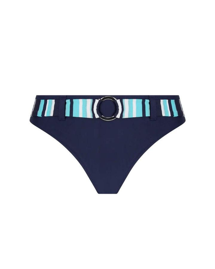 Culotte italienne, bande de taille contrastante, jambes échancrées.