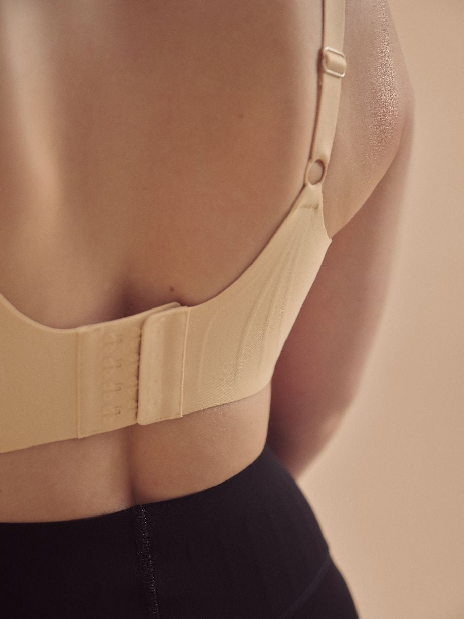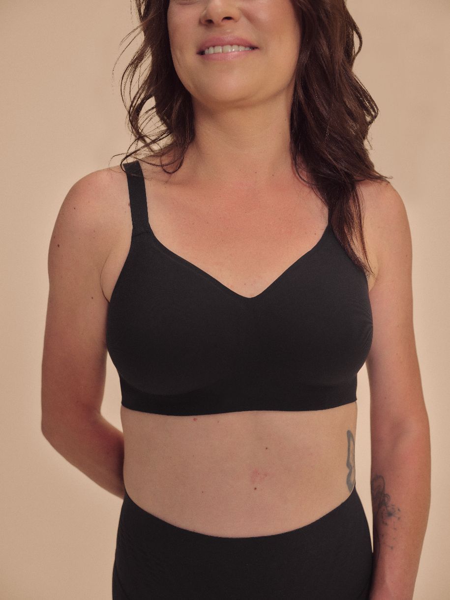 Soutien-gorge pour lymphoedème au tron ou coté du sein. Ce soutien-gorge est fait de tissu texturé sur les cotés pour les femmes touchées par un lymphoedème suite à une mastectomie ou le retrait des ganglions