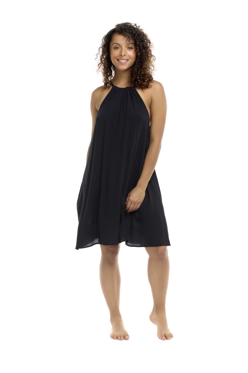 Robe soleil de plage avec encoulure au cou, légère et confortable.