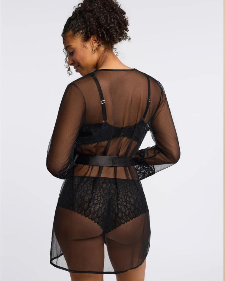 Peignoir en dentelleet mèche alliant confort et élégance.