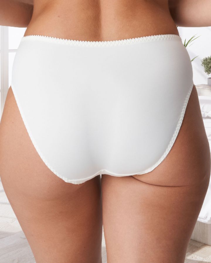 Culotte taille haute Deauville de la marque Prima Donna, opaque et luxueuse, ornée d’une broderie élégante sur les échancrures. Look frais et pétillant dans un blanc épuré.