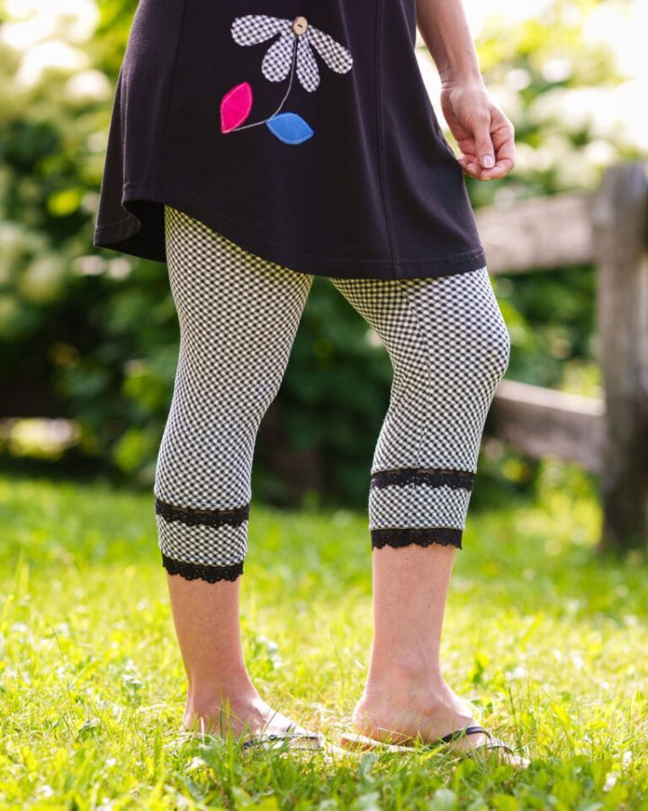 Legging flamenco avec bandes de dentelle extensibles sur chaque jambe, longueur 3/4, bande de taille élastique.