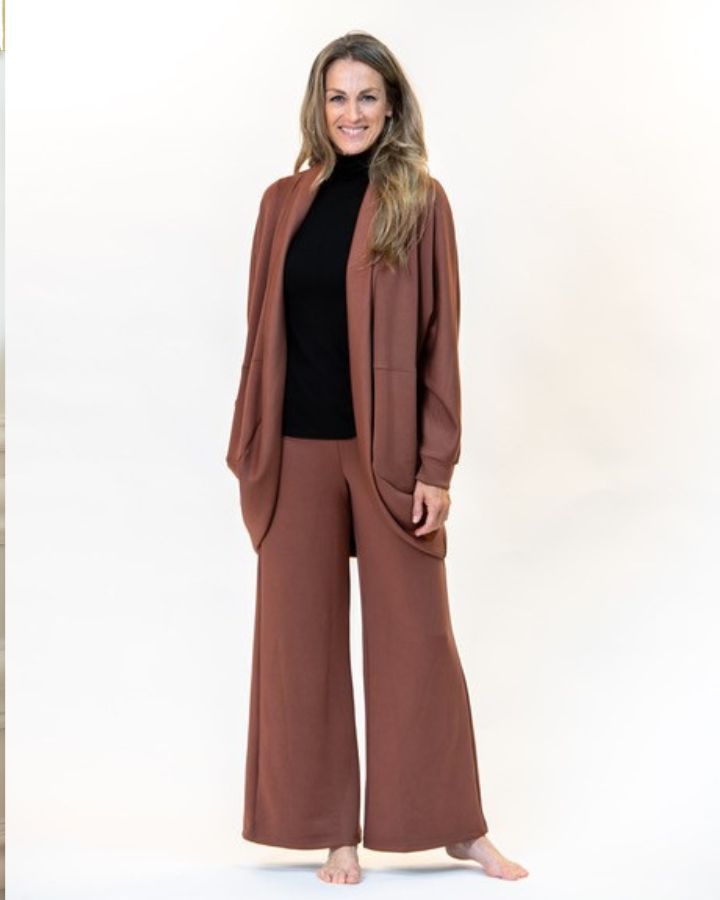 Veste à manches longues, plusieurs découpes à l'avant et au dos, longueur des genoux.
