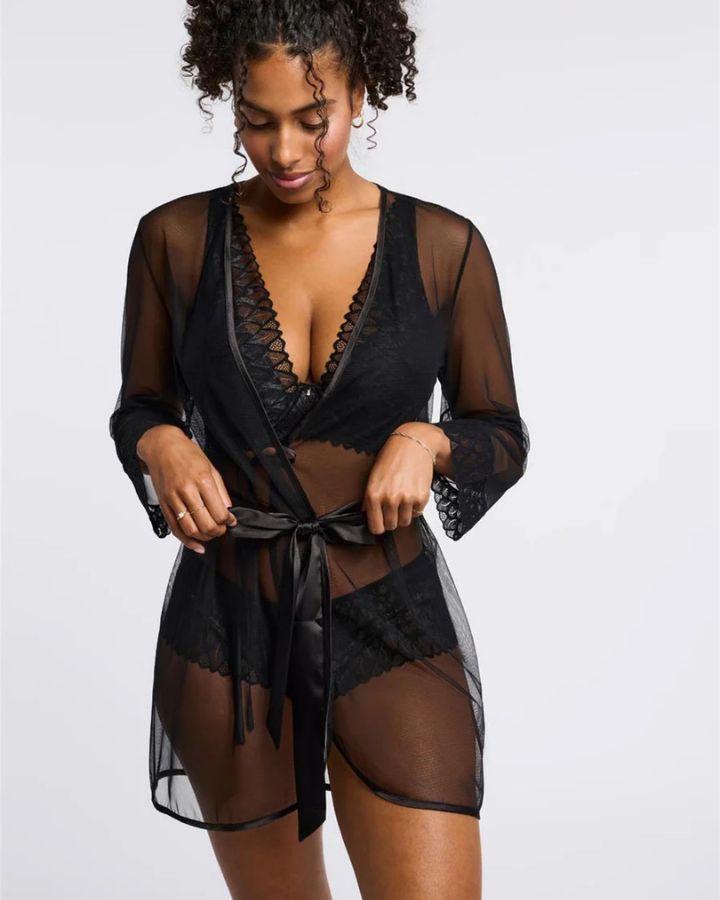 Peignoir en dentelleet mèche alliant confort et élégance.
