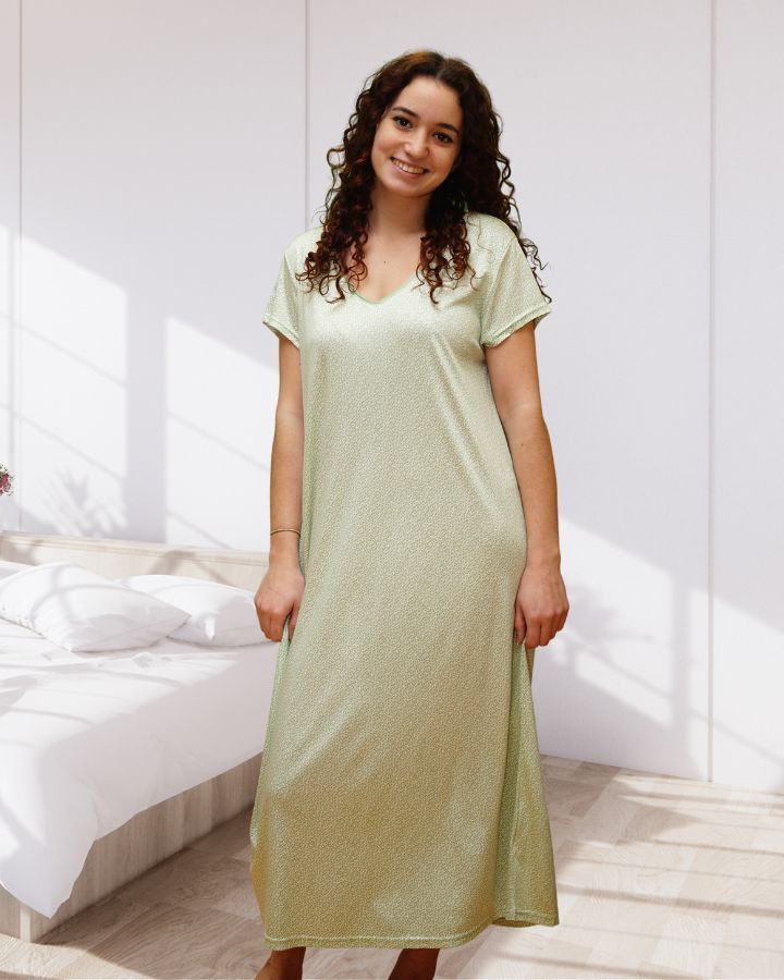 Robe de nuit longue Kailee, manches courtes, encolure en V, facile d'entretien.