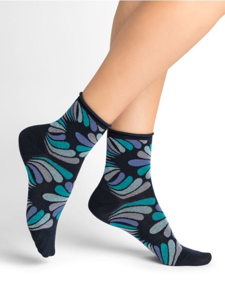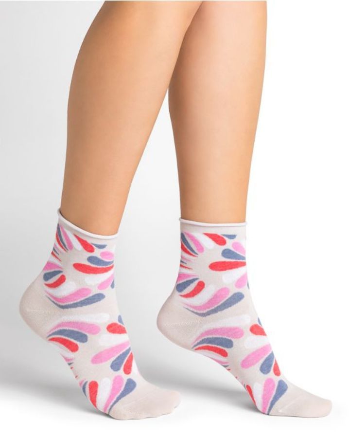 Bas cheville, motif vintage '' flower power'', sans élastique, confortable.