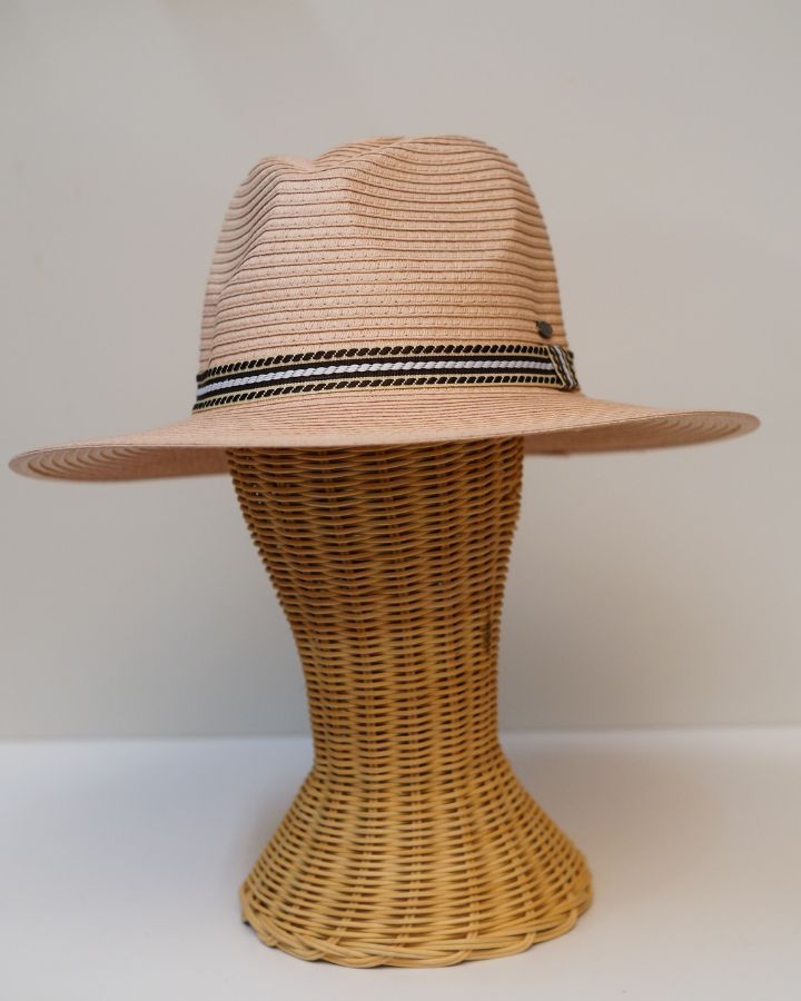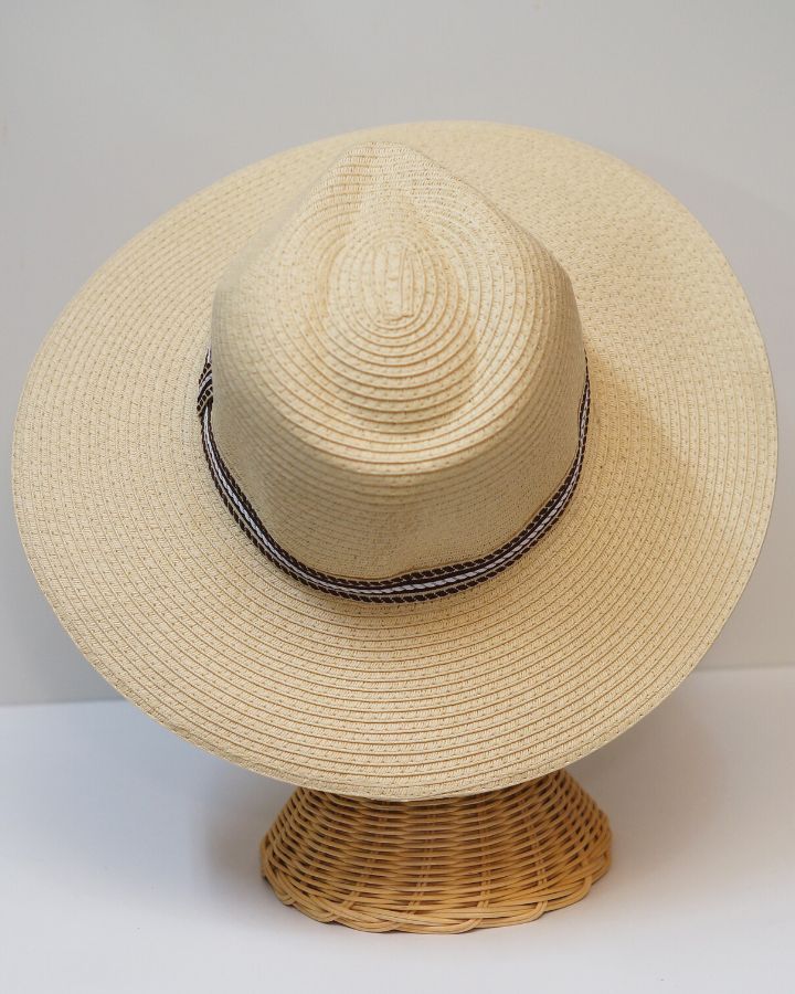 Chapeau ajustable en paille de papier, protection solaire UPF 50+, ruban rayé tissé.