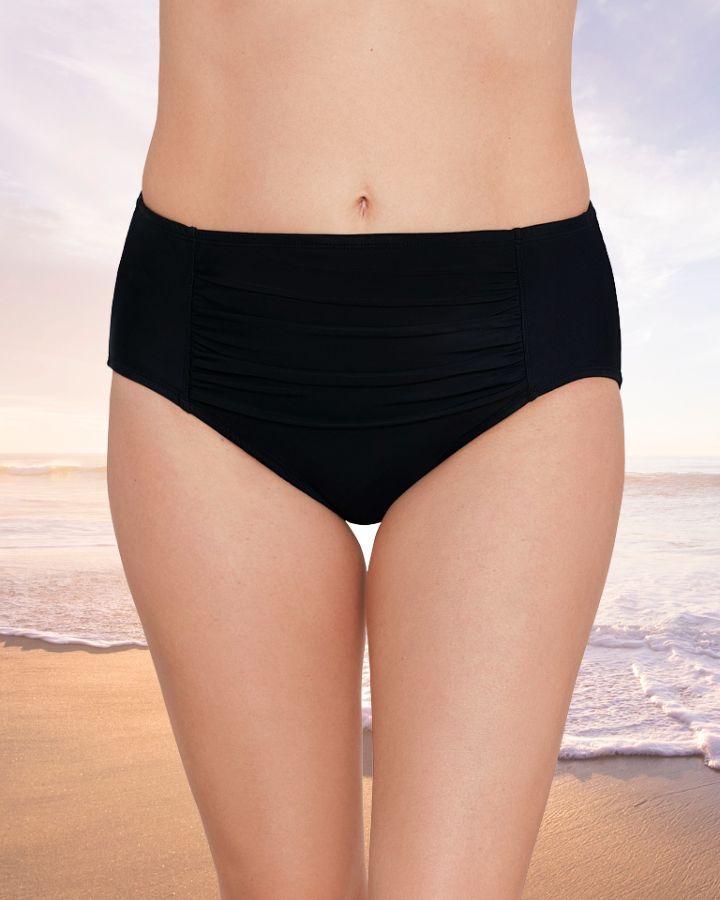 Culotte de maillot de bain plissée, taille haute, bon maintien au niveau du ventre.
