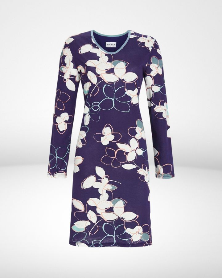 Robe de nuit manches longues Women, encolure ronde, imprimé floral.