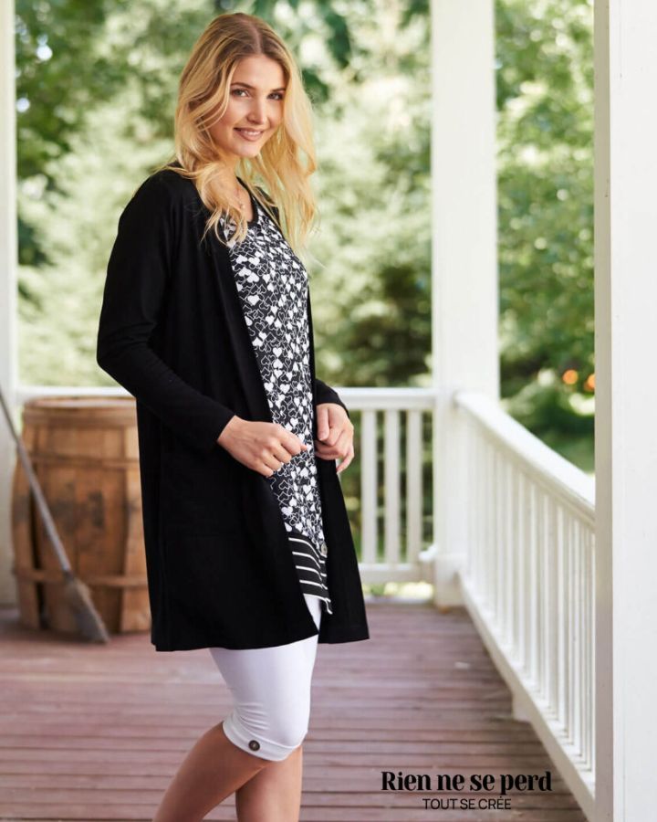 Veste Pétunia, longueur au genou, ouverte, manches longues.